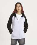 Twin-needle stitching detail. Contrast raglan sleeves. Double fabric hood. YKK plastic zip. Contrast flat lace drawcords. Spilt kangaroo pocket. Ribbed cuffs and hem. Soft cotton faced fabric creates ideal printing surface. Simple tear-out label makes it perfect for rebranding. Brushed inner fleece. WRAP certified. SEDEX certified. Vegan certified.